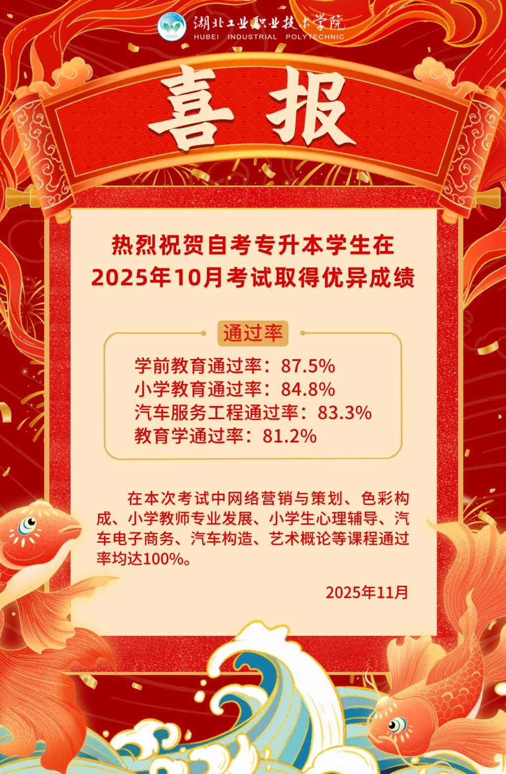2025年10月份高等教育自学考试成绩于11月19日正式公布。在全校师生的共同努力下,我校考生在此次考试中表现卓越,成绩全面告捷,喜讯接连传来。